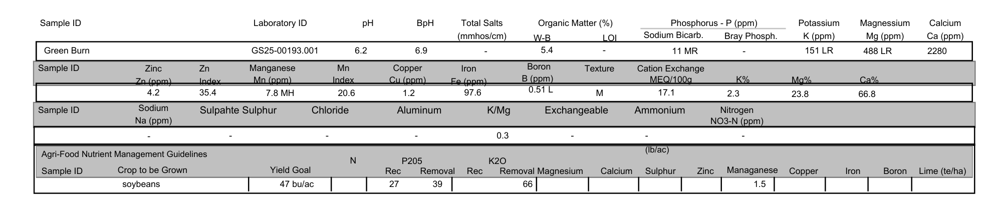 Other nutrients are also reasonably high and fertilizer applications would not be recommended. The boron value is a little low, however this is usually not a concern in soybeans.